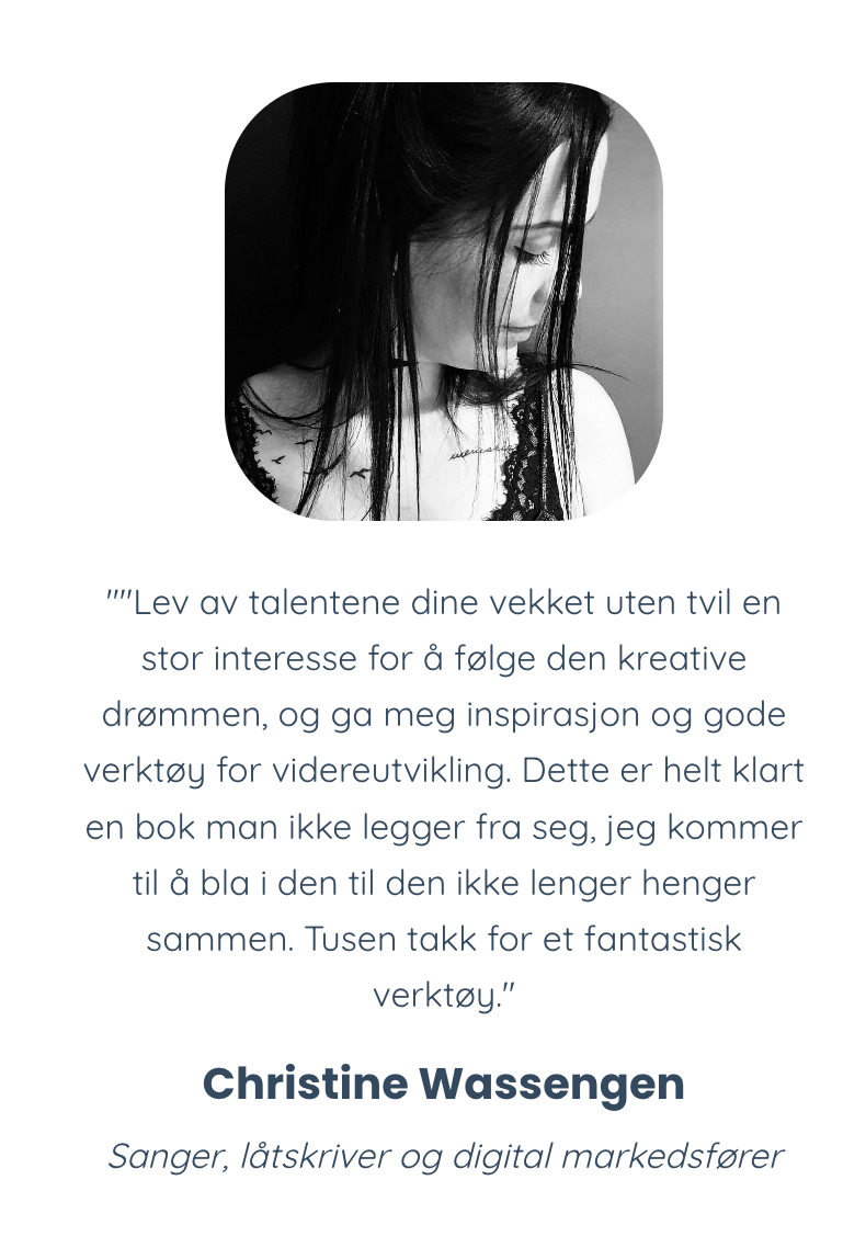 Hva er lidenskapen din? Vil du lage musikk, skrive bøker, male, fotografere, designe, spille konserter eller drive med scenekunst? Vil du tilberede fantastisk mat, undervise i yoga eller hjelpe mennesker som coach og behandler? Eller drømmer du kanskje om å gjøre noe helt annet som ingen av oss har hørt om enda?
